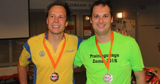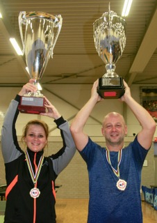Goud was er in het dubbel voor Arnoud Meijer & John Nilsson. De 'mix' Ruby Tangerman & Chris Doran werd in een spannende partij tweede. Als derde eindigde het koppel Reginald Kraaijenbrink en Jordin van Dasselaar. Jordin is afkomstig van REGA en samen met twee andere 'youngsters' Sven van de Pol en Henk-Jan van Leijenhorst verdedigde hij de Nijkerkse eer. Vanwege een ongeluk, een aantal weken terug, kon oud-kampioen Marty Hendriksen niet meedoen. Hij gaf wel aan in december sterker dan ooit terug te komen.