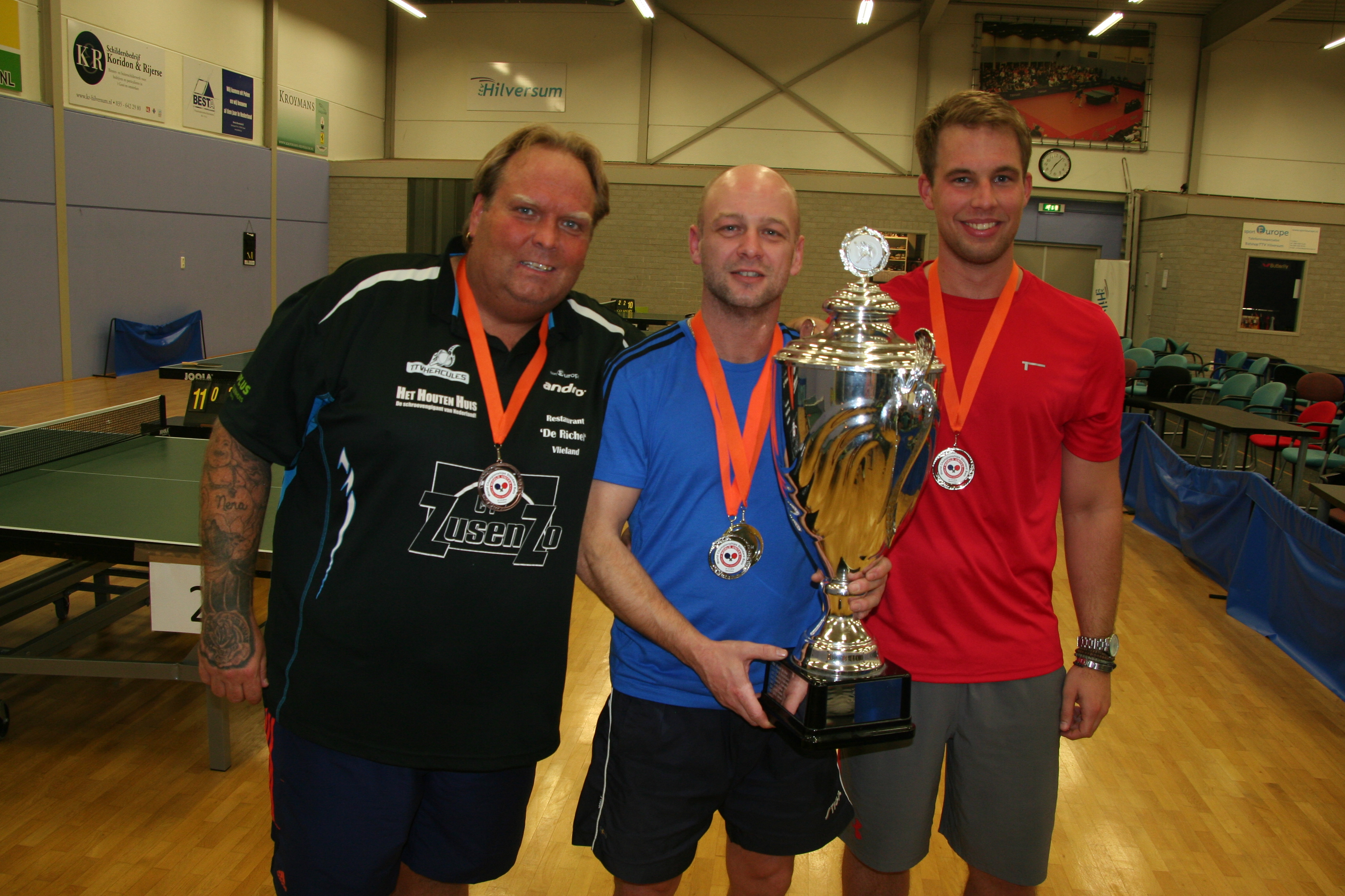 Arnoud Meijer (foto) heeft voor het eerst een grote titel gewonnen tijdens een prestigieus hardbat WUTTO-toernooi. De Hilversumse verdediger was onverslaanbaar tijdens de 5e WUTTO Dutch Open in Hilversum. Terwijl de buitenlandse concurrentie in een vroegtijdig stadium afhaakte, bleef Meijer overeind Hij versloeg in de halve finale Kelvin Heemstra met 11-5 en 11-8, waarna hij met veel moeite het Nijkerkse toptalent Sven van de Pol (16) van zich af wist te houden: 13-11, 6-11, 11-9, 11-7. In het dubbelspel bleef Meijer, samen met TTV Hilversum-clubgenoot Mick de Vette, steken op een tweede plaats. Ook in het schuurpapiertoernooi moest hij genoegen nemen met zilver. Mick de Vette (16) won de B-klasse enkelspel en pakte daarna een bronzen plak in de hoogste jeugdklasse. Zowel in het schuurpapier als in de jeugdcategorie was de 17-jarige Engelsman Sam Wilson te sterk voor de Nederlandse concurrentie.